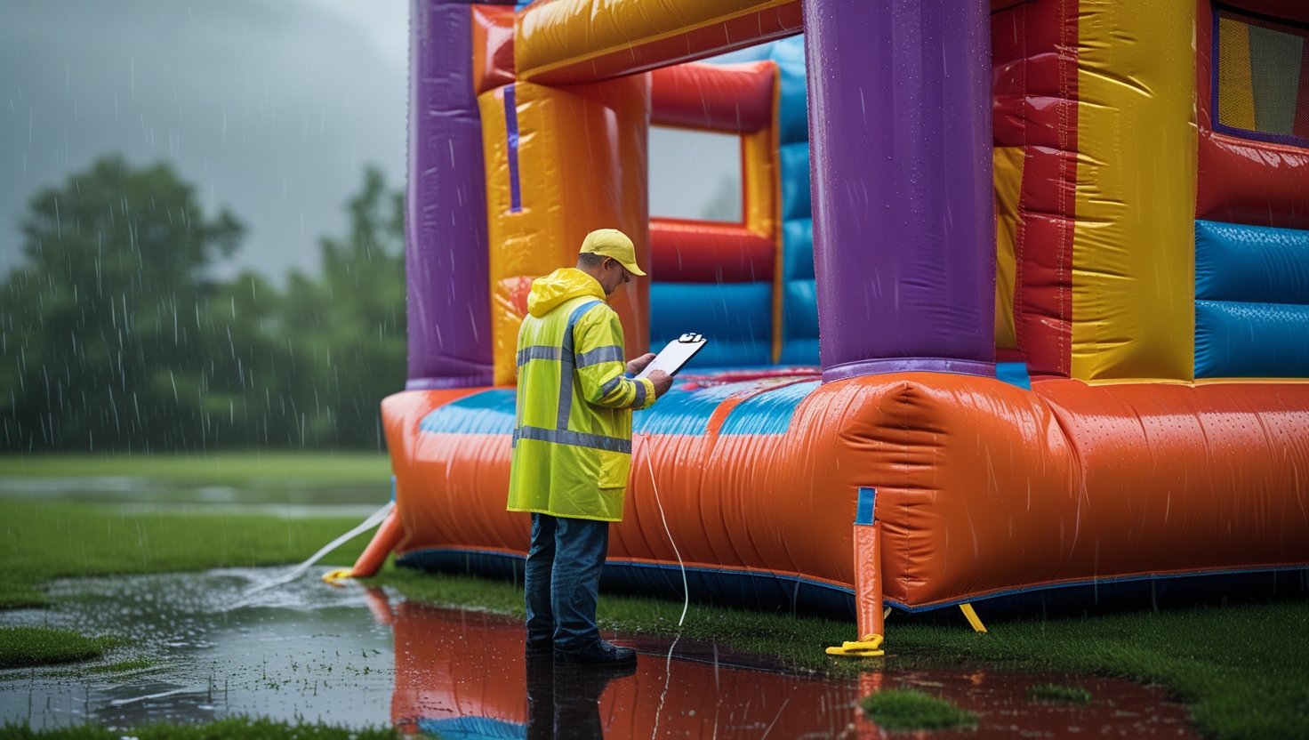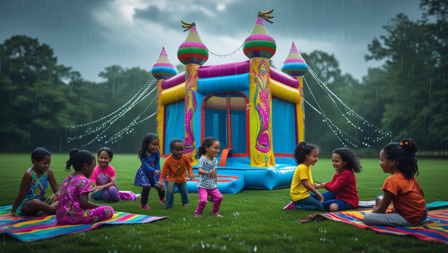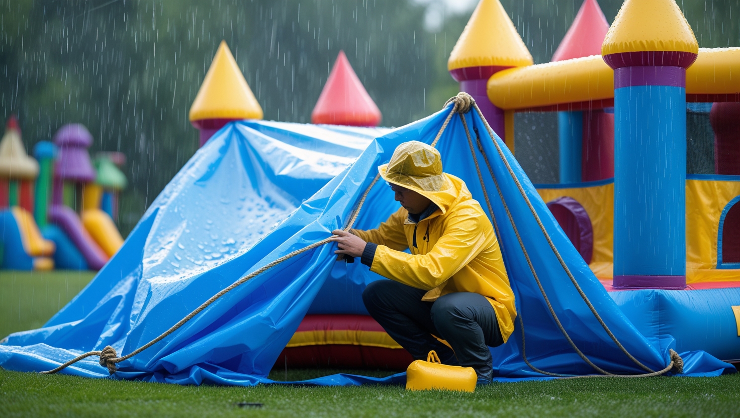 Before rain begins, ensure that all participants are aware of safety rules. If rain persists, it is advisable to evacuate the bouncy castle immediately. Designate a responsible adult to supervise and enforce these rules.