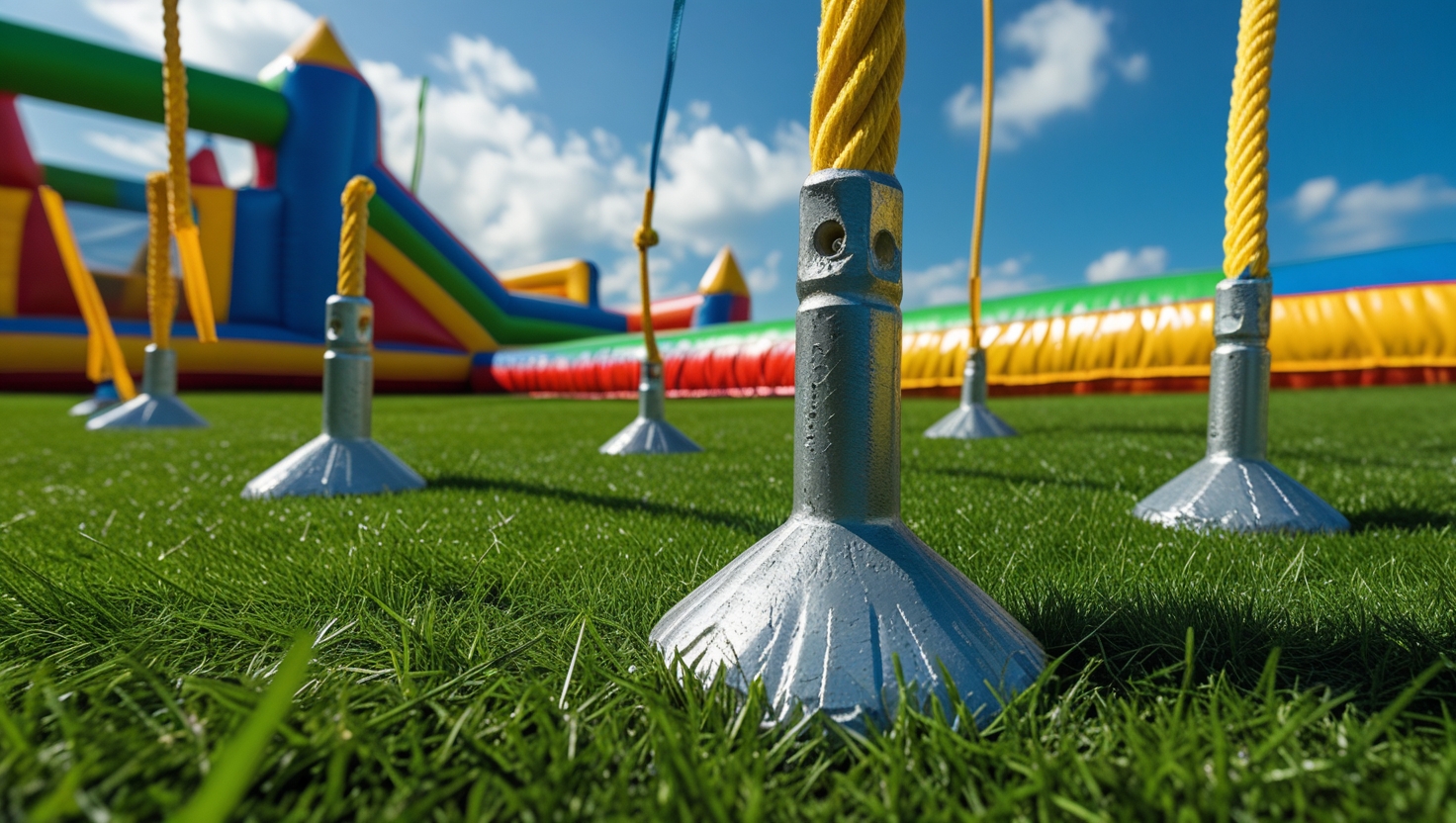 Secure anchoring is essential to keep a bouncy castle in place. Follow these guidelines: