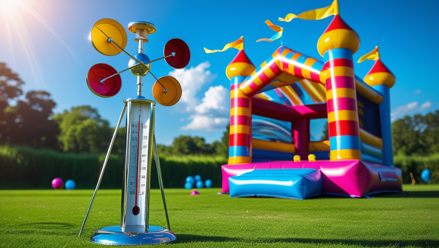 Before setting up a bouncy castle, check the weather forecast for strong winds or sudden changes in conditions. Wind speeds should not exceed the manufacturer’s recommended maximum, typically around 20 mph. Use an anemometer to measure wind speeds during the event.